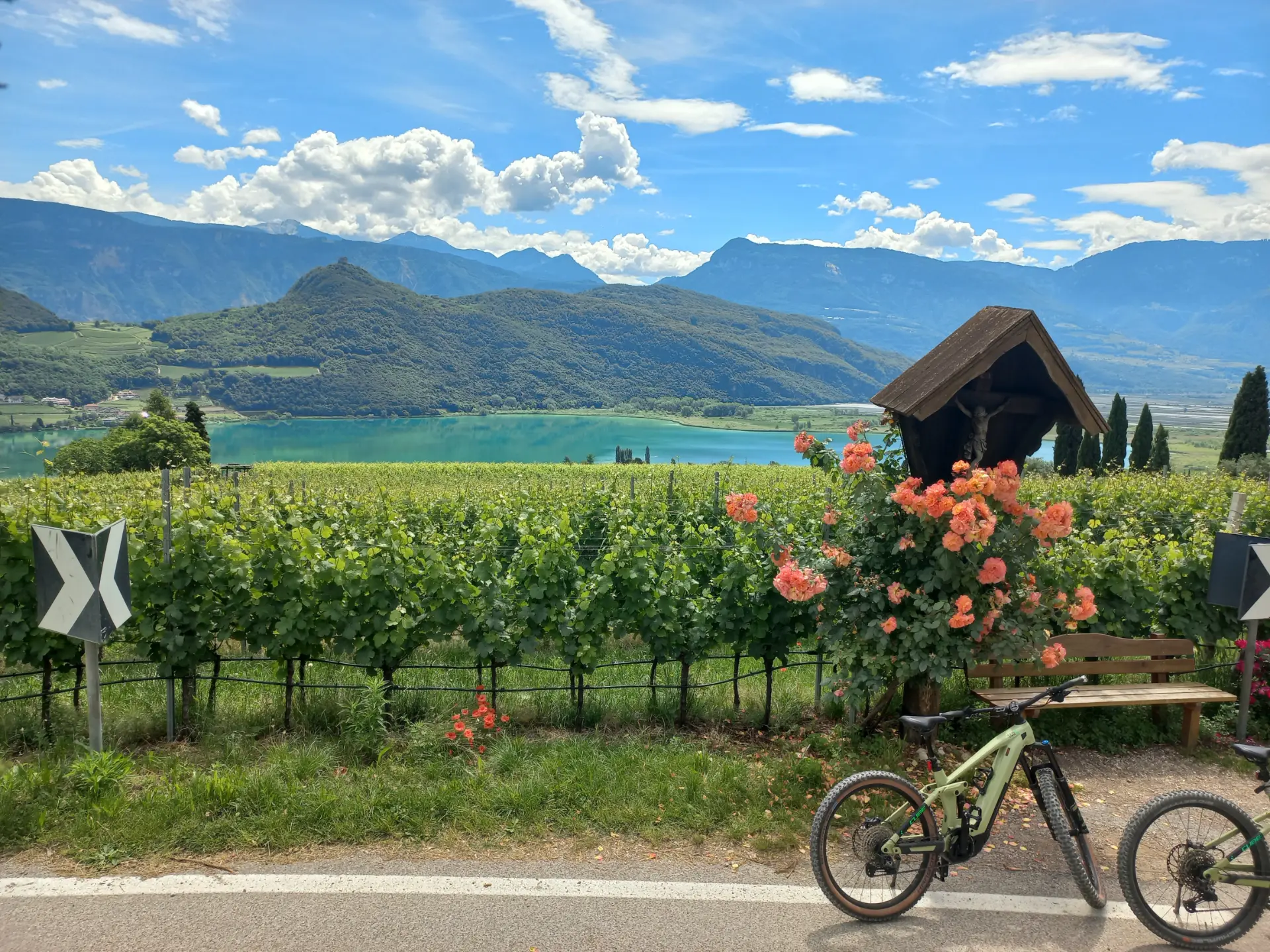 Gegenüber vom Zugbahnhof in Bozen ist die Haltestelle für die Busse nach Kaltern und zum See. Fahrtzeit ca. 35 Minuten.
