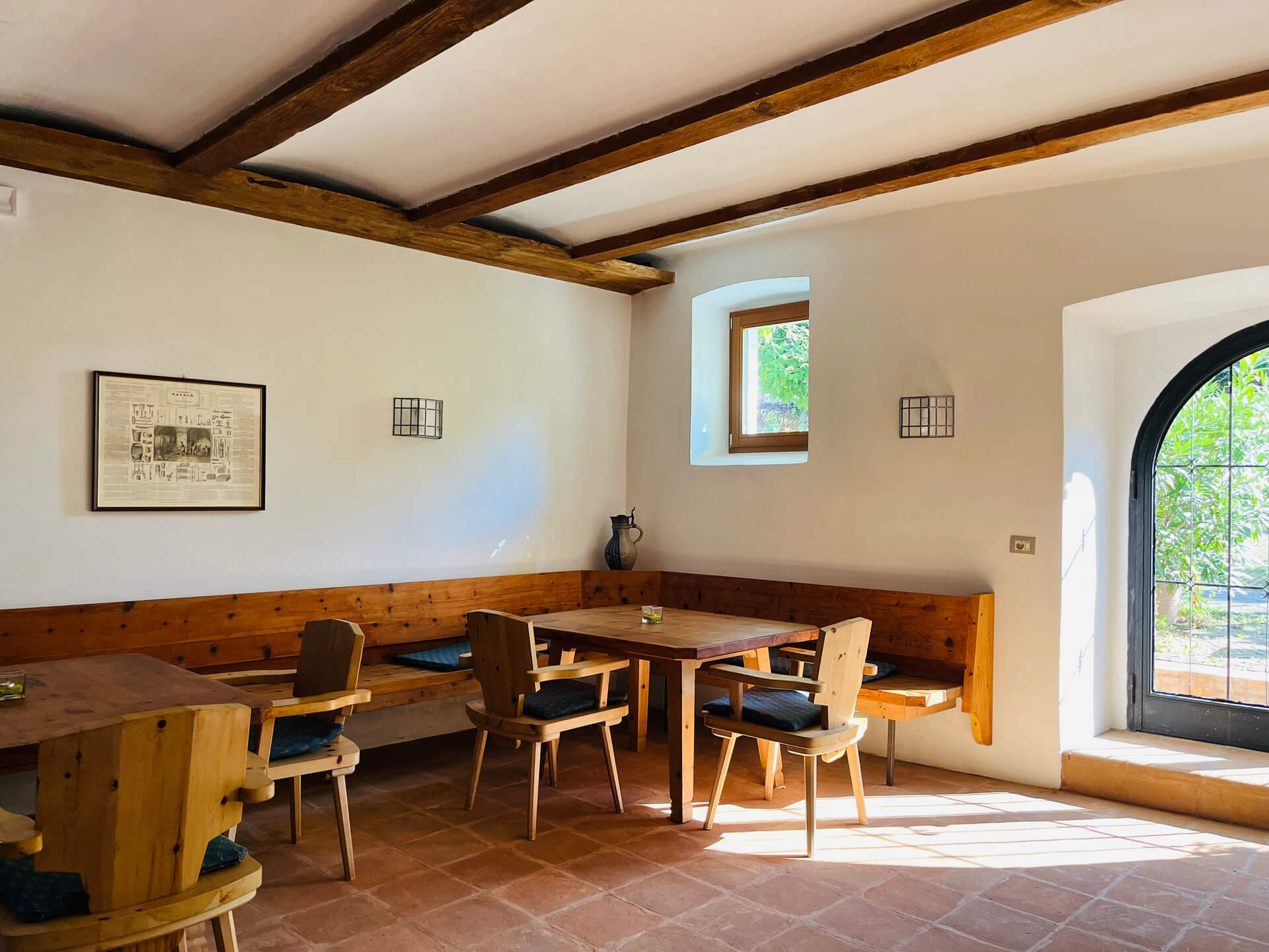 Im großen Durchgangsraum zur Bar, wo auch Kinderwägen, Fahrräder und anderes Sportgerät Platz finden, residiert unser historisches Prachtstück, die alte Weinpresse. In die Bar mit den zwei Aufenthaltsräumen kann man jederzeit hinein und darf sich dort in Ruhe selbst bedienen. Neben den gängigen gekühlten Erfrischungsgetränken gibt es auch eine schöne Auswahl von Weinen der Kellerei Kaltern und die vom Hausherrn selbst eingekellerten Eigenbauweine. Von unseren Gästen viel genutzt und sehr geschätzt wird die Hofterrasse, vom ausgedehnten feinen Frühstück am Morgen bis zur entspannten Plauderrunde am Abend. Ein besonderer Vorzug unseres Hauses ist die perfekte Lage. Es ist nur einen Katzensprung hinunter zu den Betrieben am See, aber auch im größten Sommertrubel bleibt es am Remichhof angenehm ruhig. In Fußgehentfernung findet man auch eine ganze Auswahl an Möglichkeiten, Essen zu gehen, von der Pizzeria bis zum feinen Restaurant.