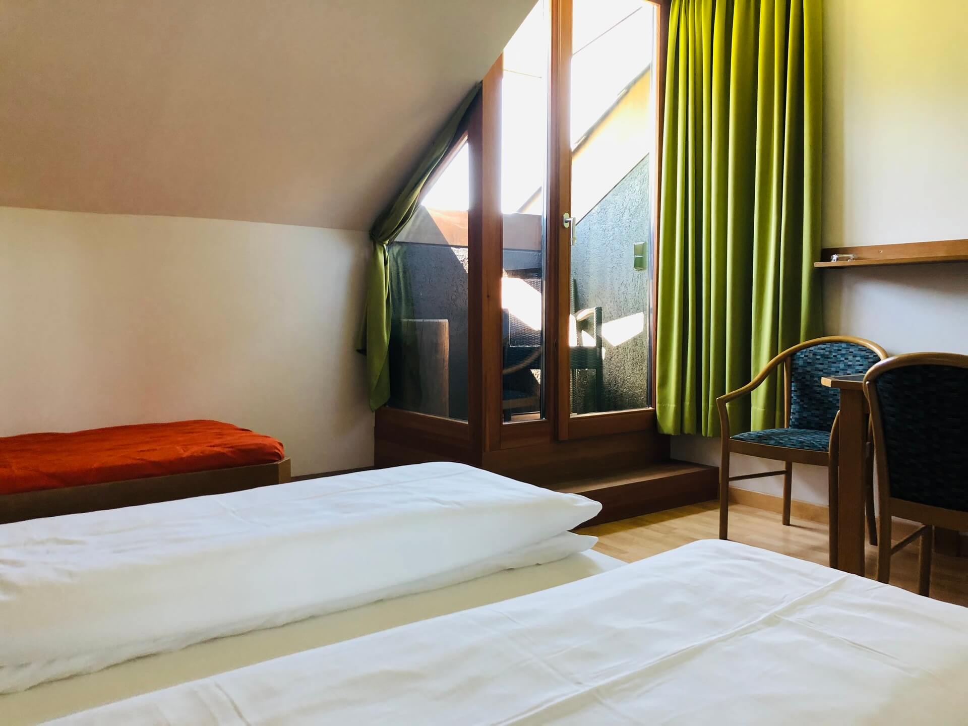 Unsere Zimmer sind alle recht geräumig und ausgestattet mit TV, Zimmersafe und W-LAN. Die Zimmer im 1. Stock sind komplett renoviert und mit den höheren Betten besonders bequem für unsere älteren Gäste. Im 2. und 3. Stock haben wir die ursprüngliche Einrichtung der Zimmer erhalten, aber alle Badewannen ersetzt durch großzügige Duschen. Die Mansardenzimmer im 3. Stock erhalten durch eine Dachloggia Licht, Luft und weite Aussicht. Die beiden „Suiten“ im 3. Stock sind unsere größten Zimmer, mit einer kleinen Küche und einem großen überdachten Balkon mit Blick zum See.